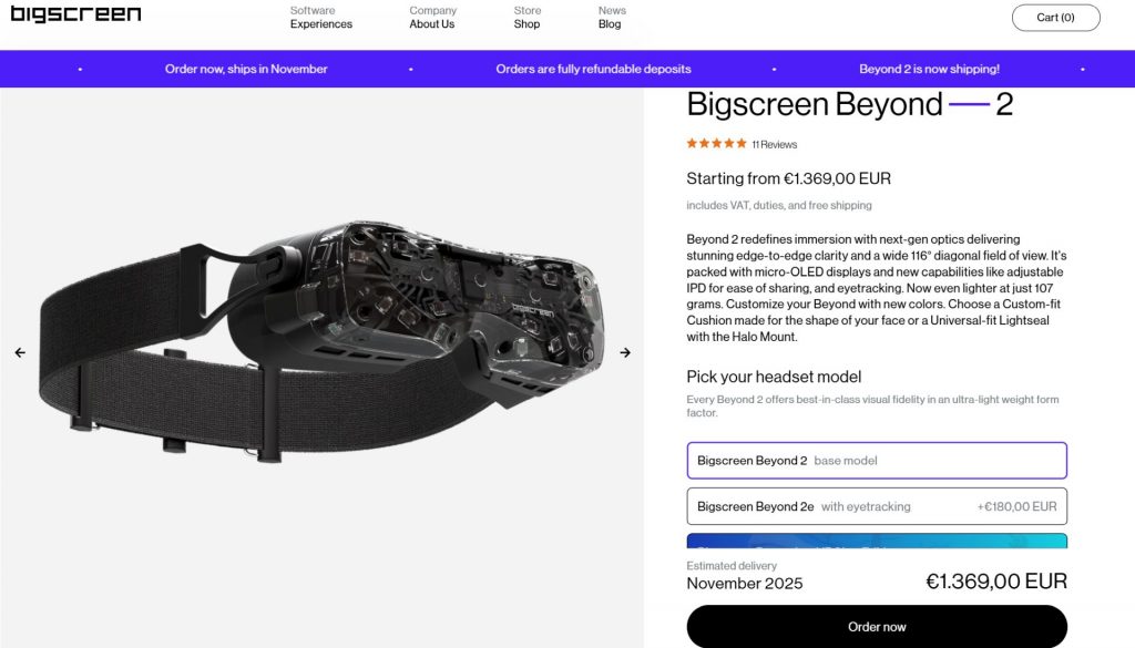 Bigscreen war ursprünglich durch seine Kino-App bekannt, bevor das Unternehmen mit der Beyond 1 ins Hardware-Segment einstieg. Ziel war es, ein kompaktes, maßgeschneidertes VR-Headset anzubieten. Mit der Beyond 2 will Bigscreen die Schwächen des Vorgängers beseitigen – etwa Glare, Field of View (FoV) und IPD-Anpassung – und gleichzeitig das Hauptmerkmal beibehalten: ultraleichtes High-End-PCVR.