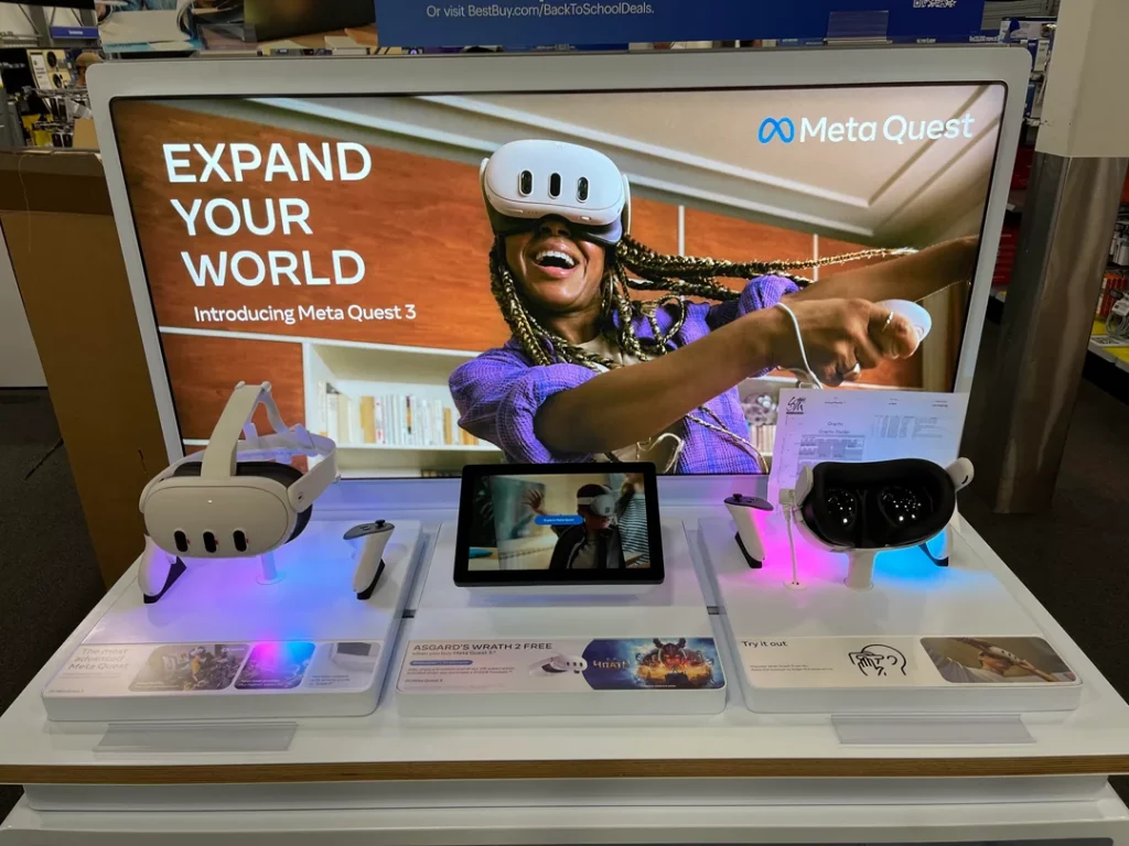Craig Storm von UploadVR beschreibt in seinem Leitartikel eine trostlose und bekannte Situation: Er betritt einen Elektrohandel in New York und beobachtet die lieblose Präsentation der Meta Quest 3. Eine Meta Quest 3S wurde gar nicht erst ausgestellt, was aber vielleicht auch keinen wirklichen Unterschied macht: Die Quest 3 war nicht als verpacktes Gerät zu sehen, die Ausstellungsstücke luden nicht zum Ausprobieren ein.